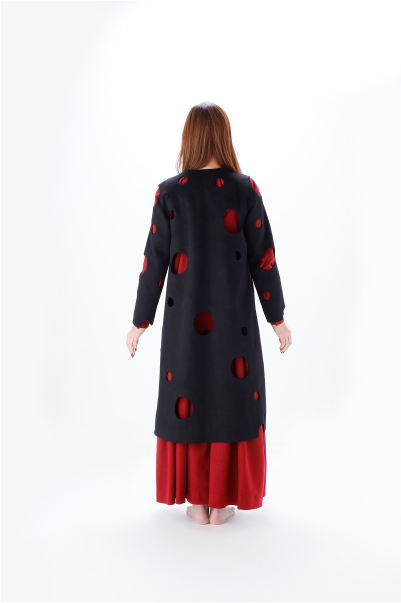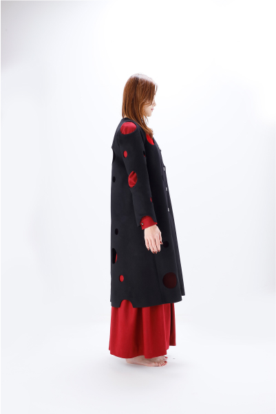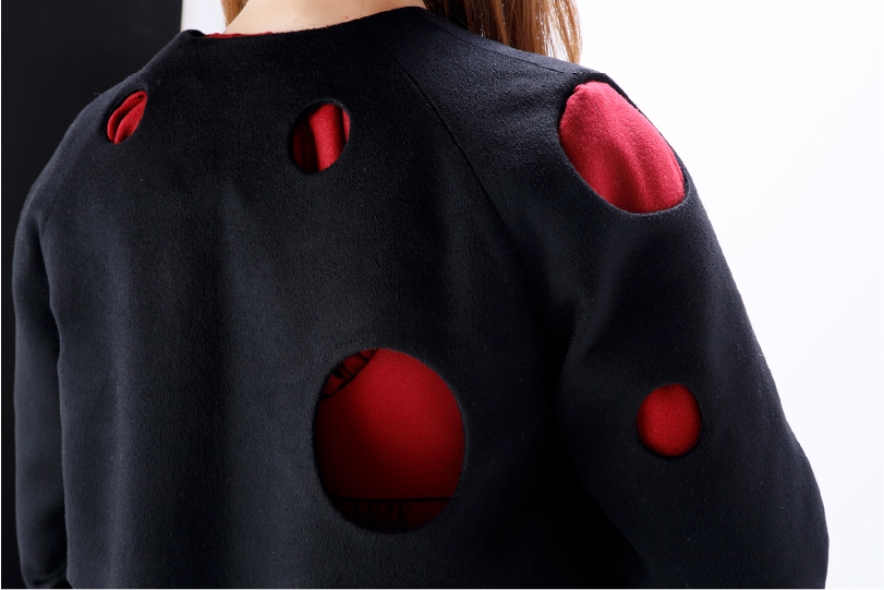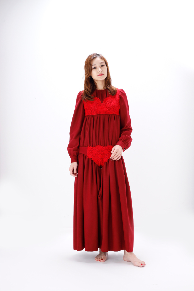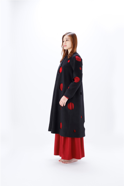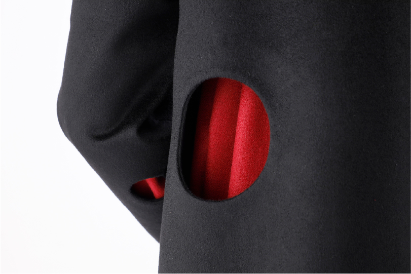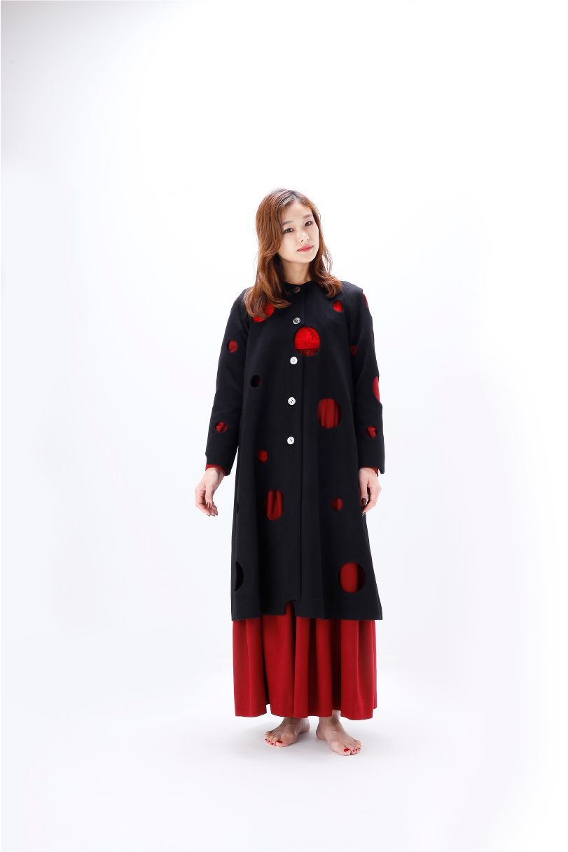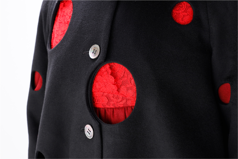 アートクチュールでは、その欲望の眼差しが、コートを突き抜け、ワンピースを突き抜け、下着にまで到達しているさまを衣服で描きました。