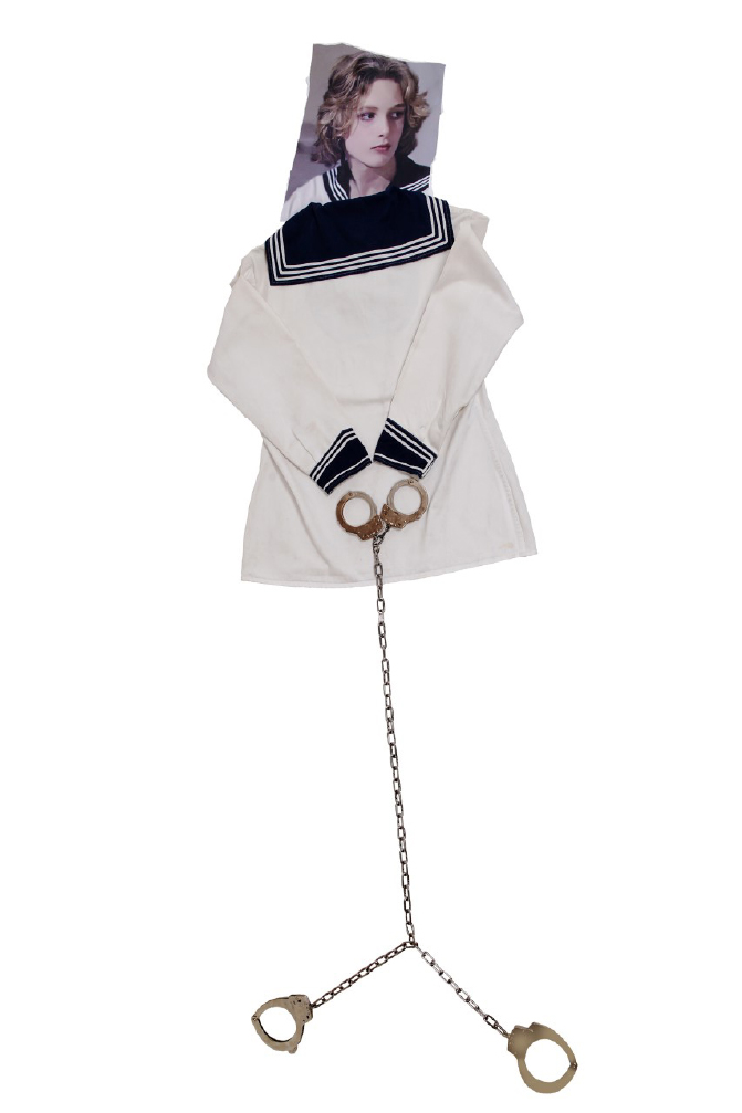 ブラックレーベルでは、人々の欲望に飢えた目に晒されたビョルンを、絶対的存在として君臨していたヴィスコンティ監督の、権力の象徴である手枷足枷で拘束し、映画のセーラー服を纏わせています。