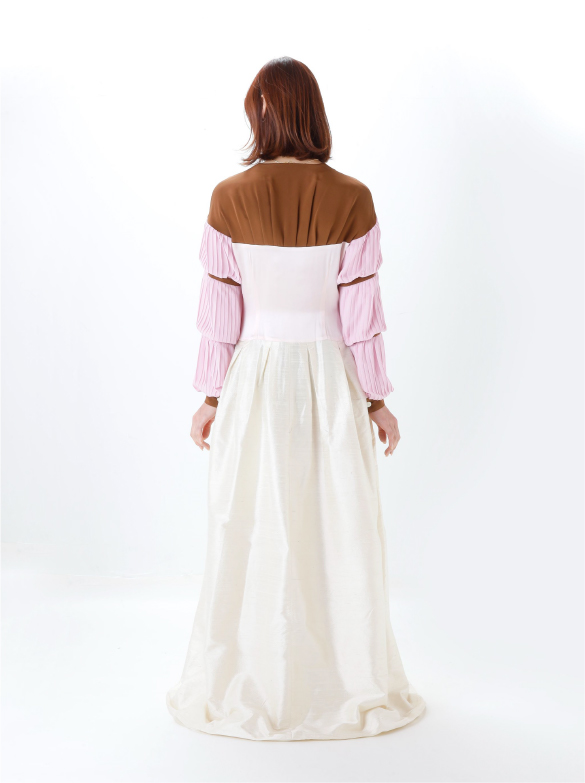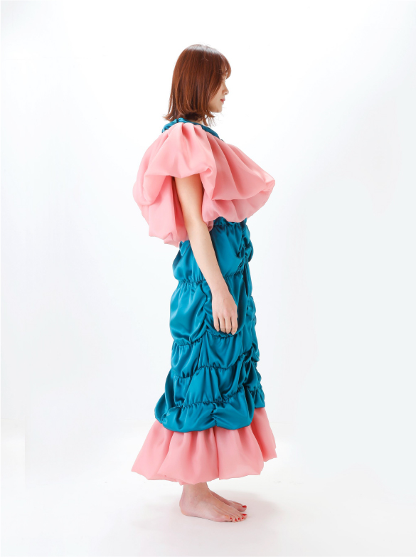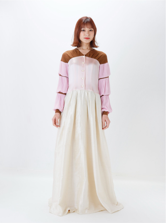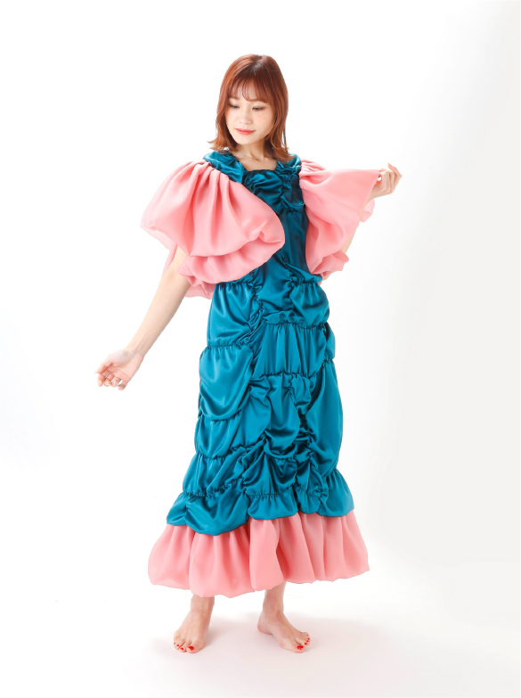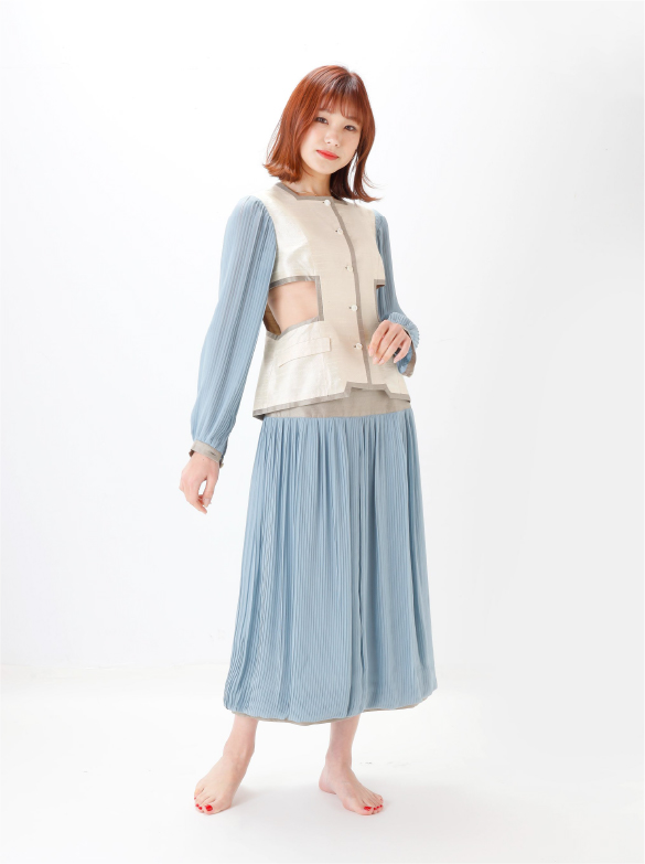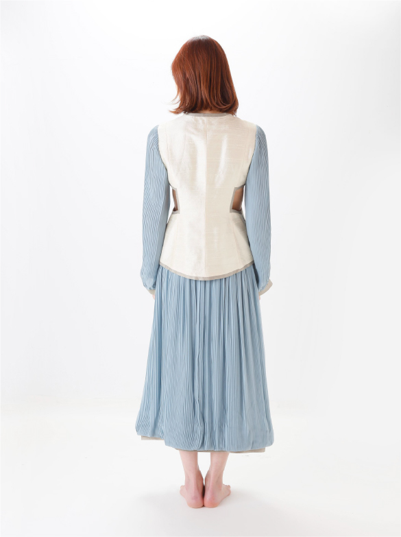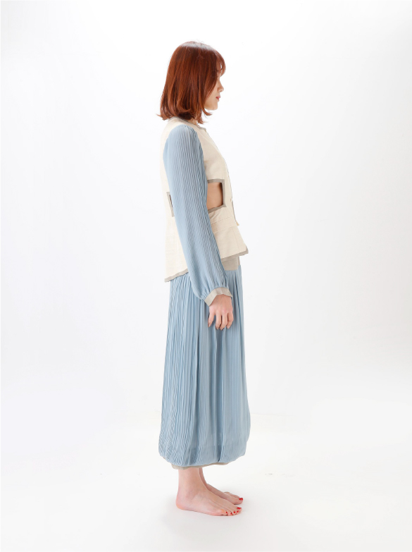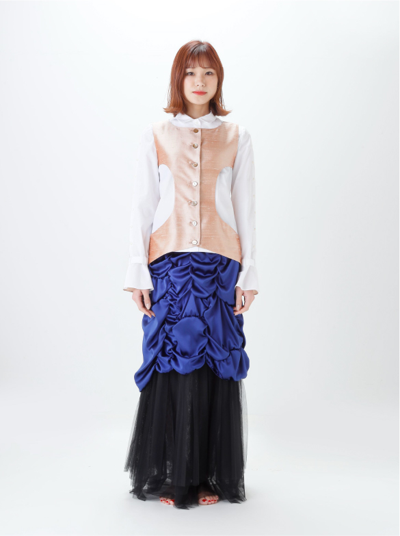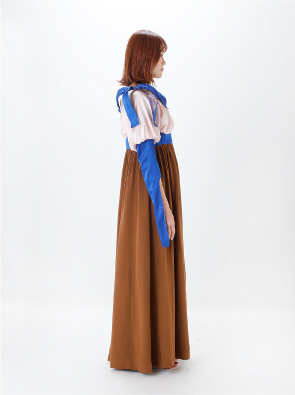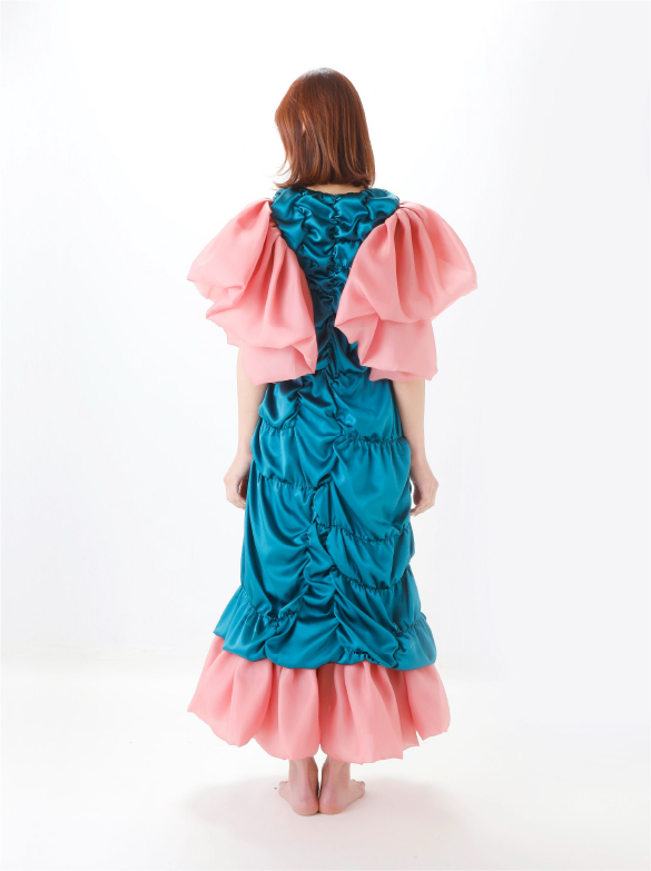 White Labelでは青い花を肩に付け、錬金術の魔術的なテイスト、緩やかなロング丈の外套の一種(ウプランド)、チュニック型衣服(コット)、ロング丈の上着(シュールコートゥベール)などをデザインに落とし込みました。
